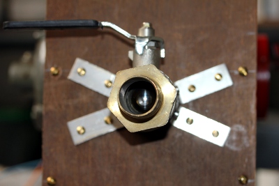 2 mm inox plaat waarmee we de 5 1/4" kraan op het houten paneel van de