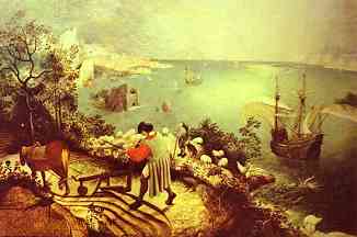 How it takes placeThis piece was written for a concert by the Belgian ensemble Champ d'Action, on the theme of Music & Architecture. The concert was organised on the occasion of the opening of a new building by the Belgian architect Stephane Beel. The starting points of "How it takes place" are notions like "space, place and distance". These concepts are treated literally -as physically moving in space- and figuratively -as in the spoken language where you have expressions like "a close friend" or "to be distant to someone". The latter aspect is reflected in the relationships among the musicians on the stage. Therefor "How it takes place" can also be considered as music theatre. During the performance, the musicians act as in daily life: open windows, smoke cigarettes, turn the pages of the score of an other musician,… Distance and space are also interpreted in a musical sense: large differences in dynamics, tempo and timbre give the listener the impression that the instruments are physically far away from each other. In short: the interaction between this physical, musical and social/emotional interpretation of distance is what the piece is all about. The title "How it takes place" is extracted from the poem "Musée des Beaux Arts" of W.H. Auden, at its turn referring to "The Fall of Icarus" by Breughel. The spectator is drawn to the spatial effect of the composition: distant mountains, a boat sailing on the sea and a farmer working in the foreground. In the bottom right-hand corner -only a small detail- two legs of a drowning Icarus disappear in the sea. Apart from the references to death and sufferance, the painting and the poem give a good impression of the atmosphere in "How it takes place": some musicians play solo while others play together, smoke cigarettes or have already left the stage. live-recording and score available at the Logos Foundation
