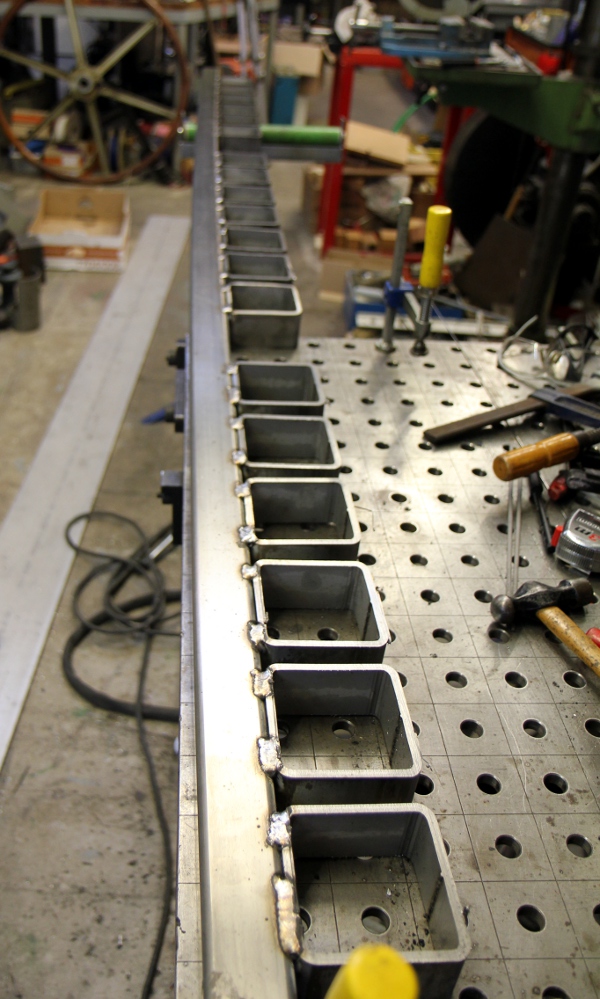 Full day of welding work on the tube holder structure.