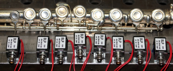 Automatisering van het mechanisme lijkt een vrij rechttoe rechtaan ontwerp te zijn, aangezien we kunnen putten uit onze ervaringen met de automatisering eerder van de hobo, de klarinet, saxofoons en de fagot. Voor een dwarsfluit kunnen we volstaan met 14 elektromagneten. De kleppen en het mechanisme kunnen we integraal behouden. Het aanblazen evenwel stelt bijzondere moeilijkheden en vormt een probleem dat we nooit eerder aanpakten. De luchtstroom moet immers niet alleen snel en plastisch moduleerbaar zijn, maar ook de richting van de luchtstroom en de diameter ervan moeten goed en soepel bestuurbaar zijn.