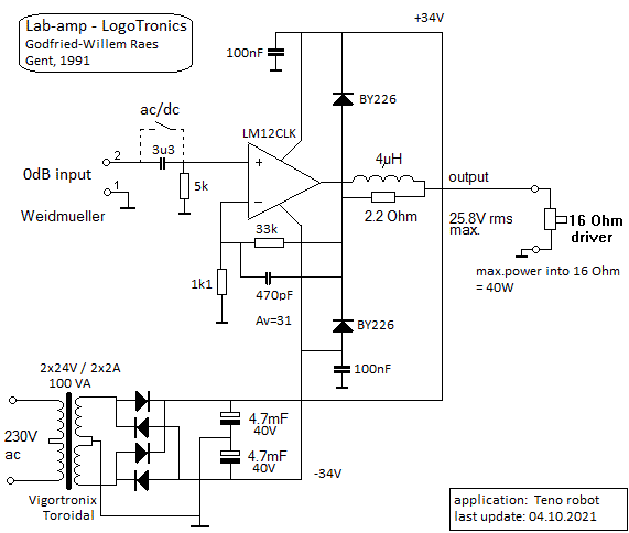 LM12 power opamp, 150 W, analog amplifier.