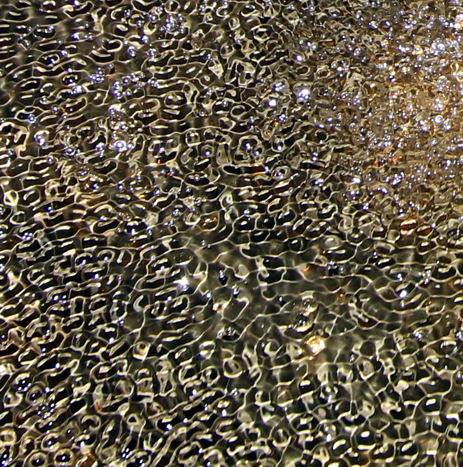 When the excitation level gets very high, tiny water drips start emerging from the surface. They can be seen as the white dots in this picture: